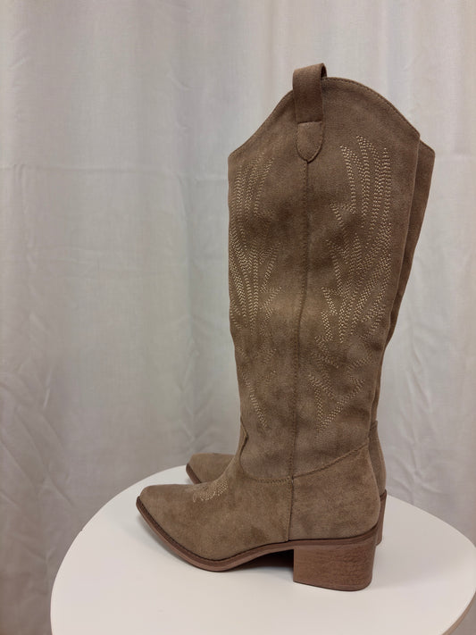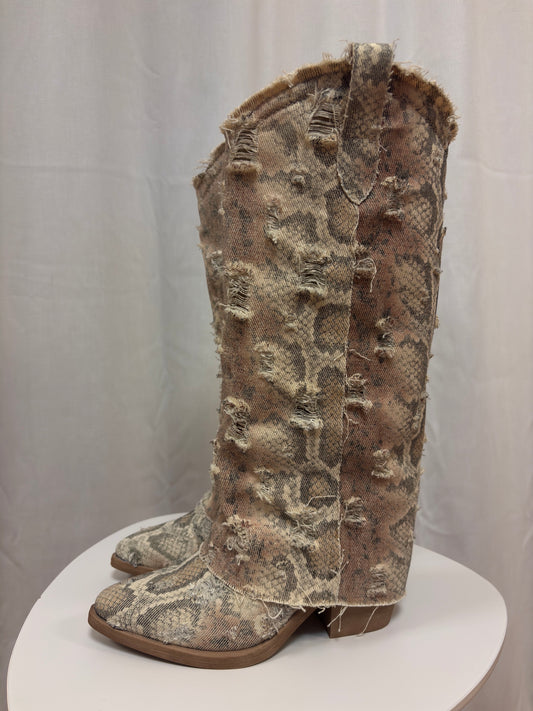 Cowboystiefel mit Jeanstoff / Schlangenoptik