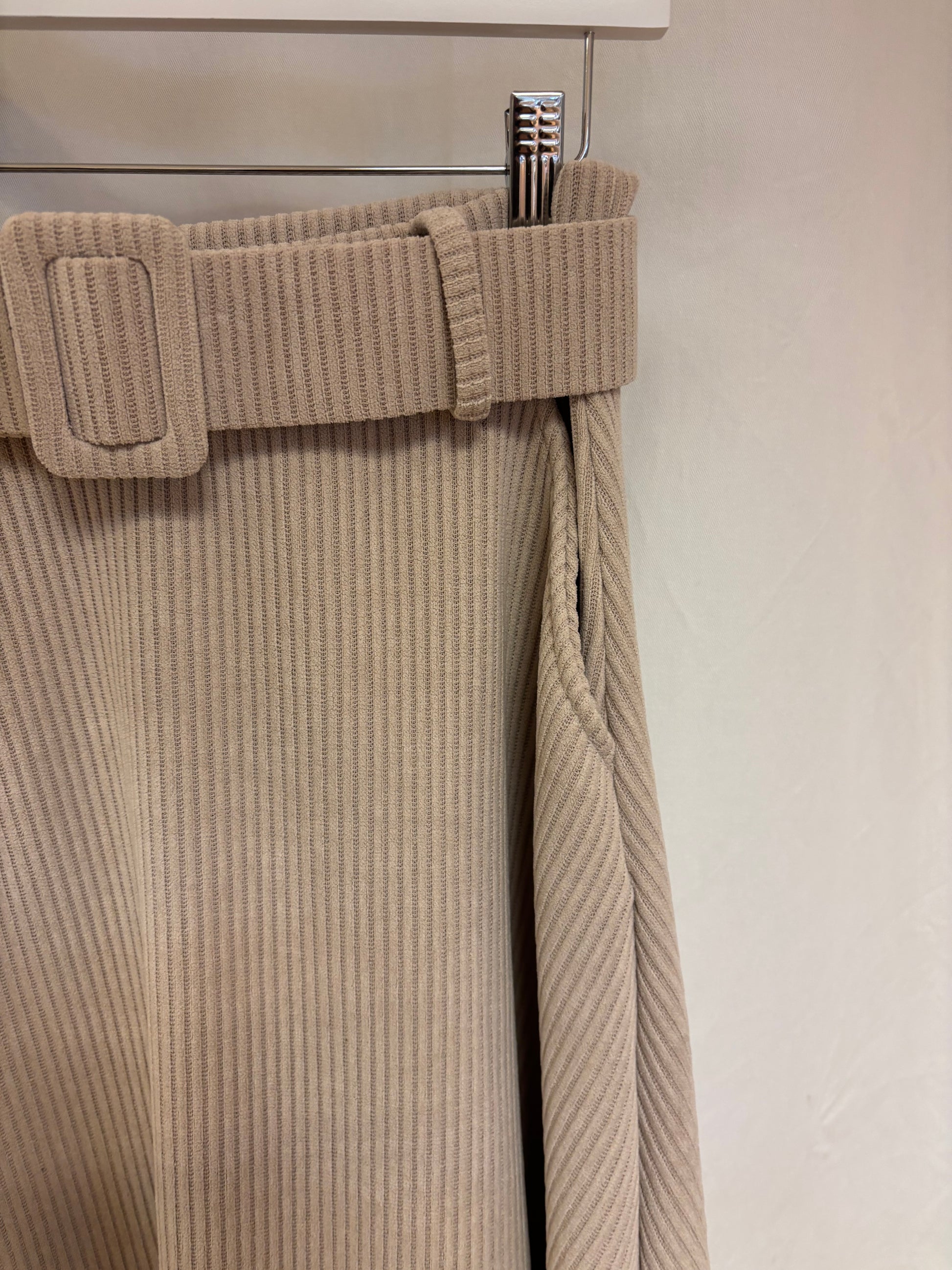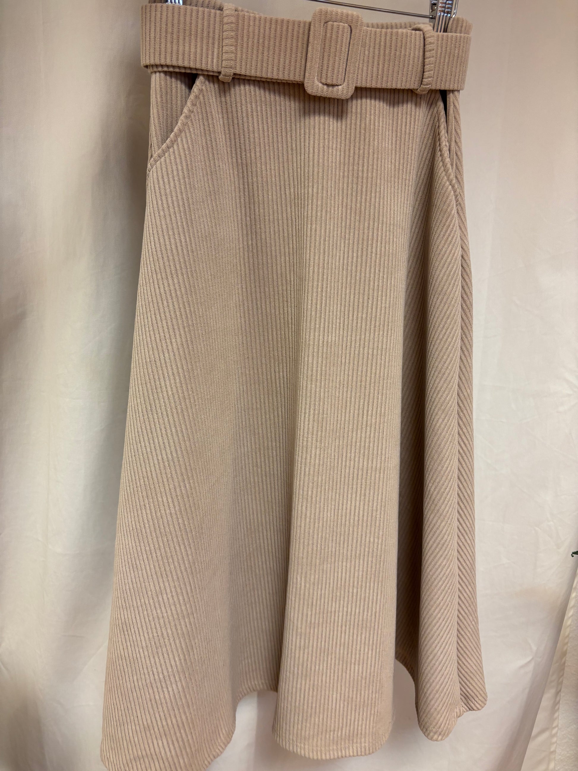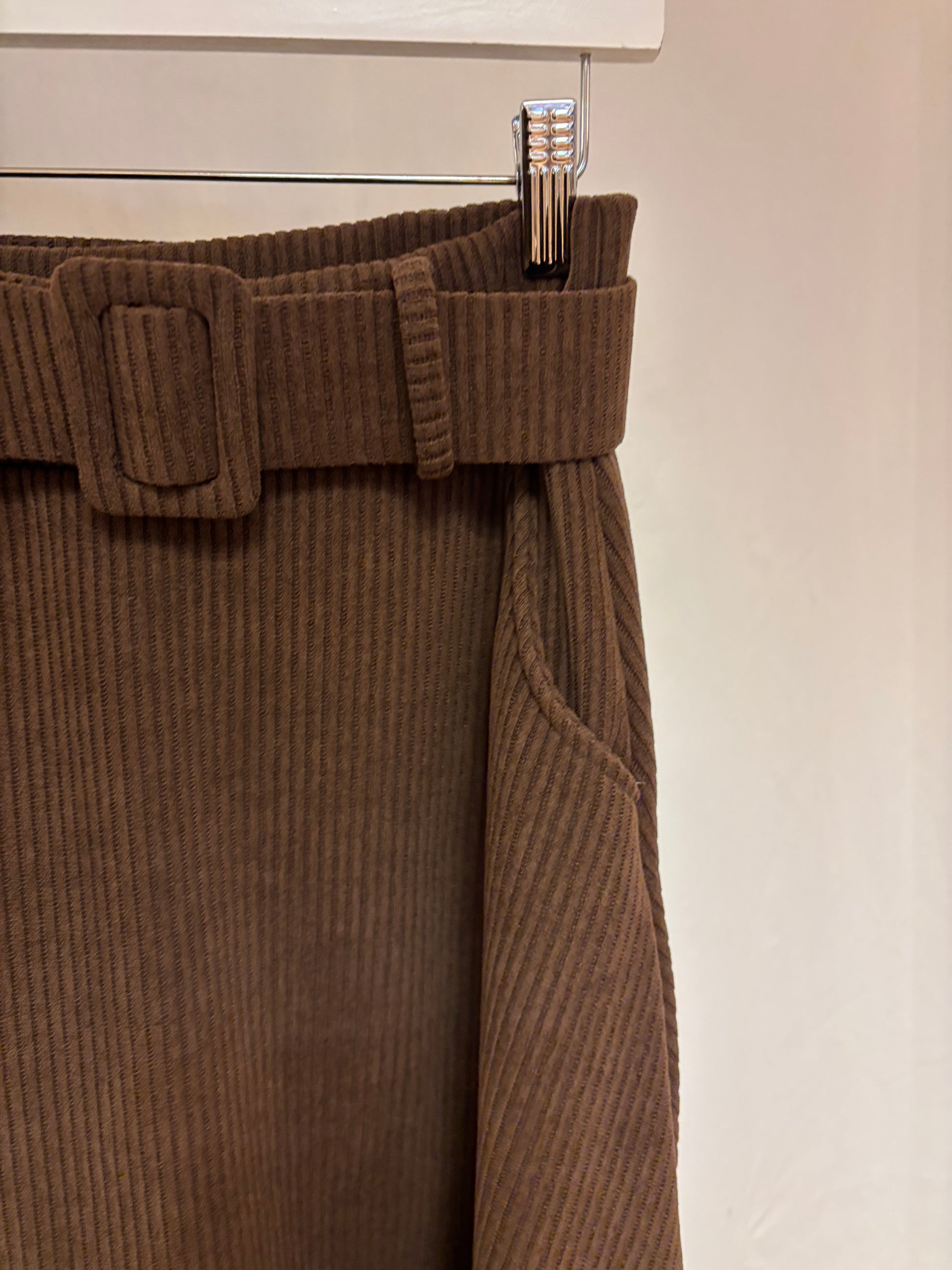 • Langer Cordrock mit seitlichen Taschen und Gürtel