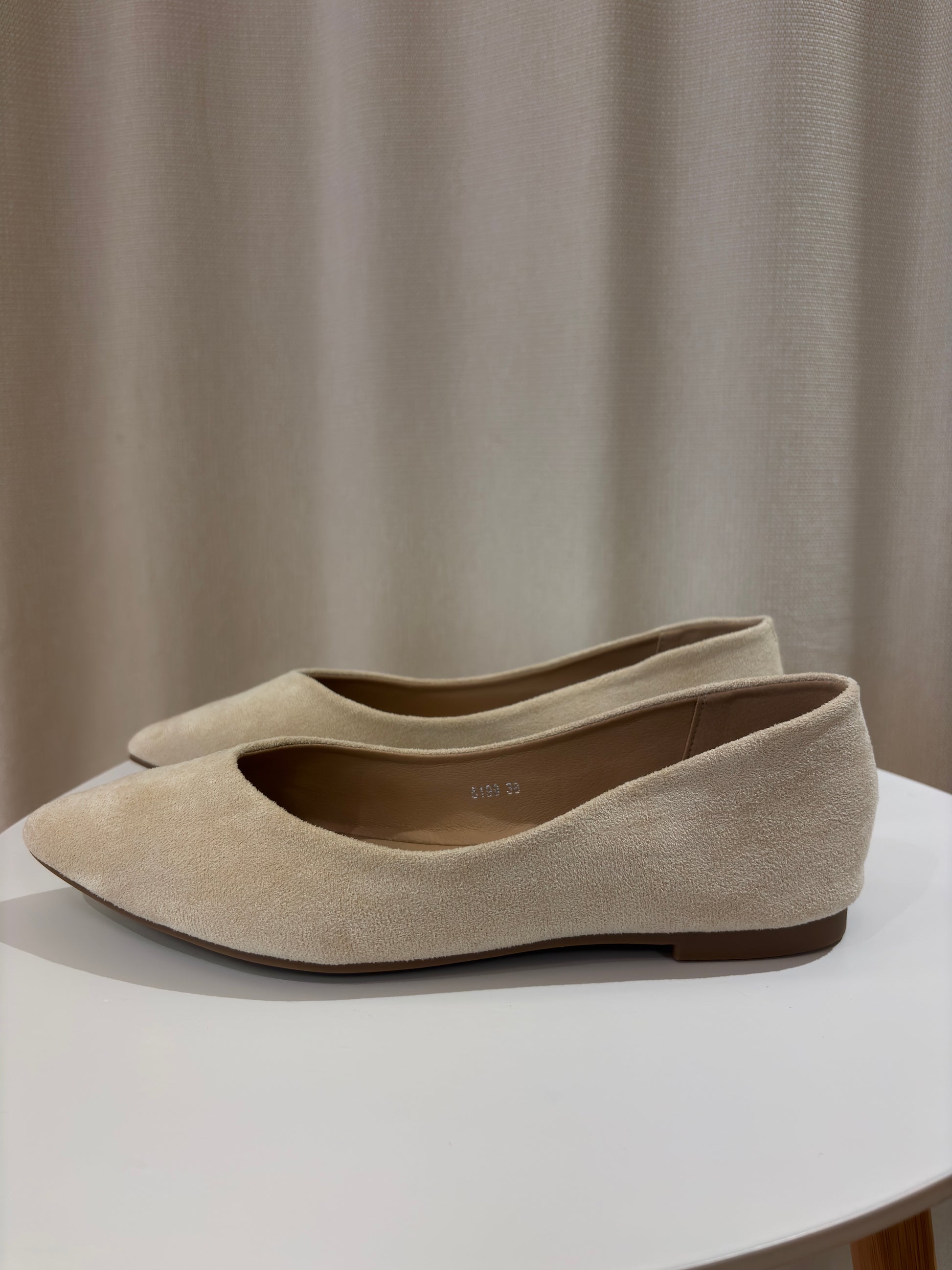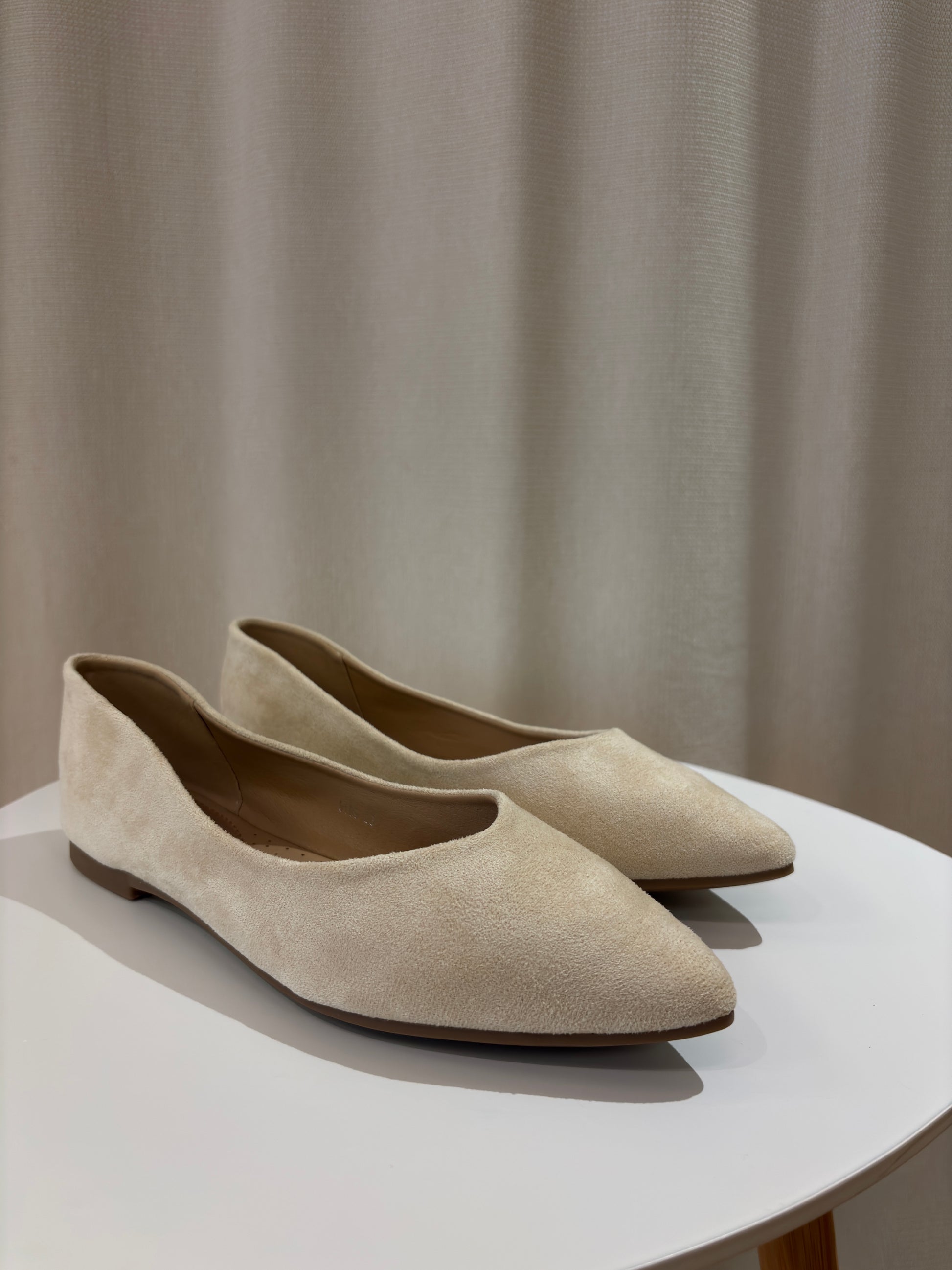- Beigefarbene spitze Ballerinas mit weiterem Fußbett