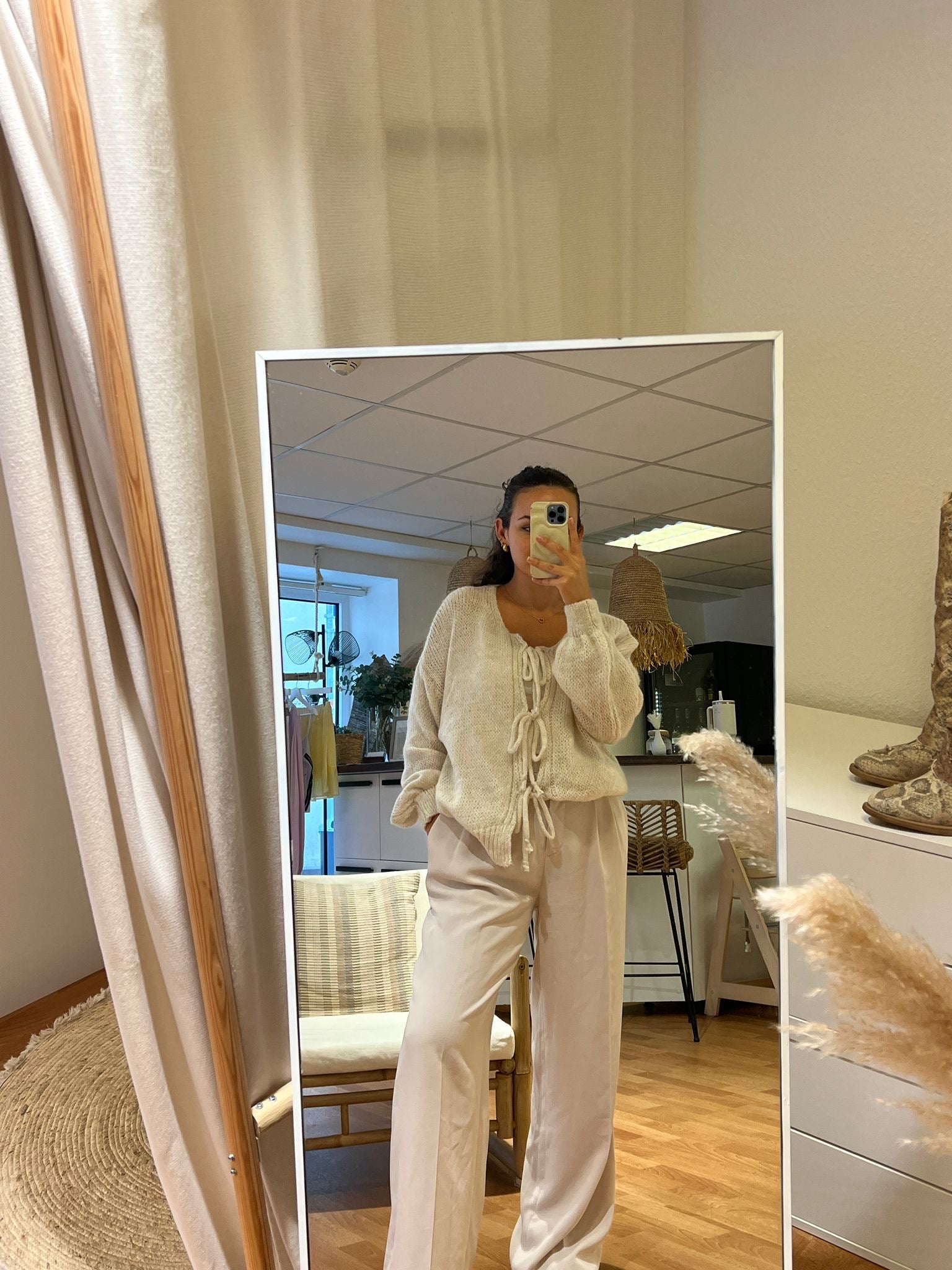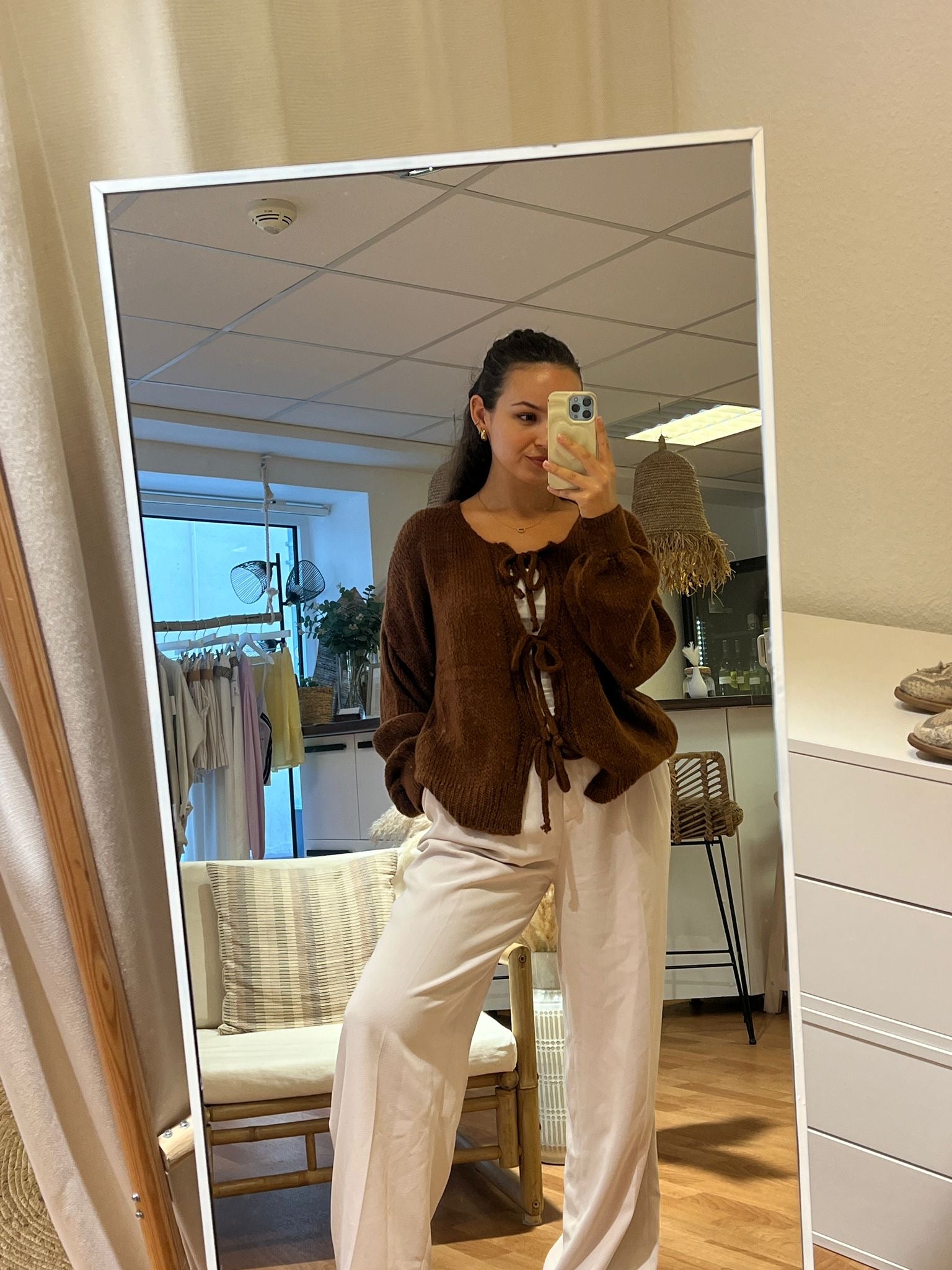 • Kuschelige Strickweste zum Binden mit Schleifen